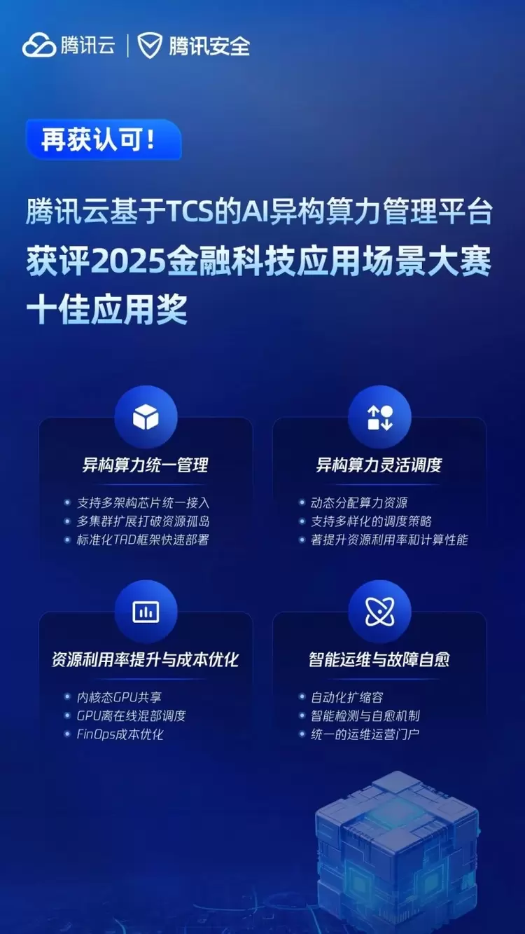 凭借卓越的技术实力与灵活的管理能力,TCS 目前已在多家金融机构及政企客户中成功落地,为客户AI训练推理业务提供高效支撑。凭借多项可信云权威认证及深度参与行业标准制定,其卓越性能、可靠性及稳定性已获充分验证,有力支持数字金融的创新发展。