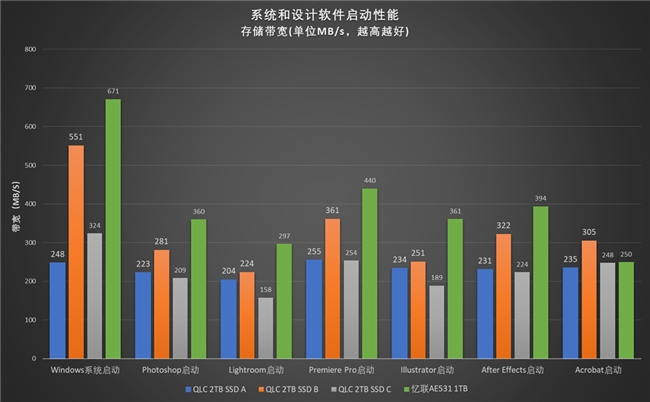无论是系统和设计软件启动,还是玩家们需要的游戏加载性能,忆联AE531都具备更强的表现。