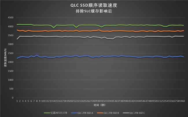 对比来看,忆联AE531的QLC直接读取性能在同类产品中处于较高水平: