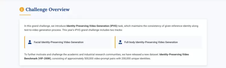 此外,在本次ACM国际多媒体会议上,智象未来举办了Identity-Preserving Video Generation(IPVG)挑战赛。赛事吸引了北大、上海交大、腾讯等国内外顶尖科研及企业团队参加,参赛者需要在生成视频的过程中保持给定身份的一致性,完成人脸或全身身份保持的任务。智象未来担任本次赛事主办,是国际顶会对其多模态视觉生成能力处于世界前沿的权威认证,彰显了其研发团队在行业内的强大号召力。