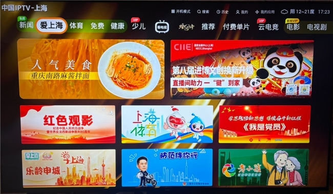 百视通利用上海IPTV、东方有线的广泛覆盖优势,实现上海全部家庭用户的无死角触达。在“第八届中国国际进口博览会”新闻专题页,进博文创宣传片占据右上醒目推荐位,第一时间抓住用户目光;“爱上海”专区首屏量身定制推荐图,右下角同步呈现文创视频号及抖音号二维码,直观引导用户扫码跳转,无缝打通“观看-了解-购买”的消费闭环,让进博文创轻松走进千家万户。