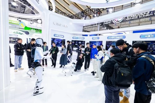 同时,一款能“陪聊、陪玩、陪跑”的家庭硅基萌宠机器狗,也成了现场年轻人的最爱。“这是我们自主研发的首款四足机器人,不仅能陪你跑步运动、为你提供海量情绪价值,更是孩子们探索世界的AI伙伴。比如,它能实时识别万物,激发孩子的求知欲,它还会用独特的‘狗狗视角’记录所见所闻,自动生成趣味Vlog,为生活带来多样乐趣。”工作人员表示。