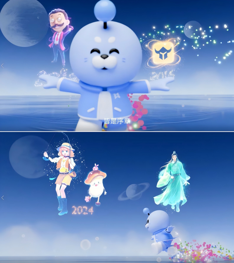 在这部时长约2分钟的3D动画作品中,小益漫步于充满科技感的奇幻空间。通过“每一步落下,脚下泛起涟漪”的视觉设计,动画依次呈现了益世界从《商道高手》《金币大富翁》等早期产品,到《我是大东家》《这城有良田》等作品的发展历程。将略显枯燥的成长轨迹,演绎为一场可见的浪漫旅程,并通过动画表达其将始终秉持“用好游戏创造快乐”的初心。