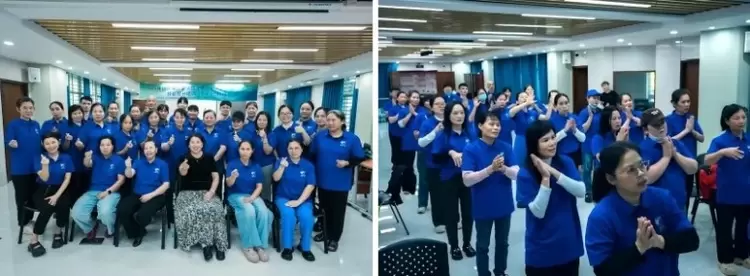 胡春梅老师打造的“沉浸式实战课堂”,以“情景模拟+实操演练”为核心,带领学员们全情投入,现场欢声笑语不断。课堂中75%的时间聚焦“动手实操”——涵盖真人按摩手法训练、急救处置技巧演练、轮椅与拐杖等辅助器具的规范操作及场景应用灵活运用,让每位学员从“听懂”到“会用”,实现理论与实践的无缝衔接。