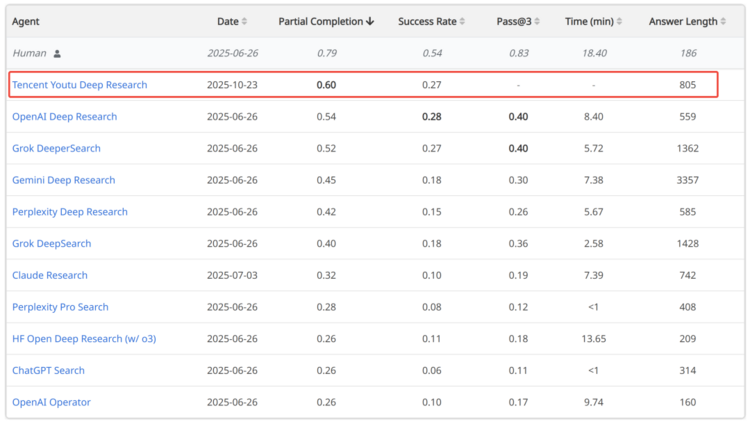 腾讯优图实验室自研的AI搜索算法D-Search(Discourse),在「AI搜索智能体」领域的国际权威榜单Mind2Web2上,拿下了全球第一。