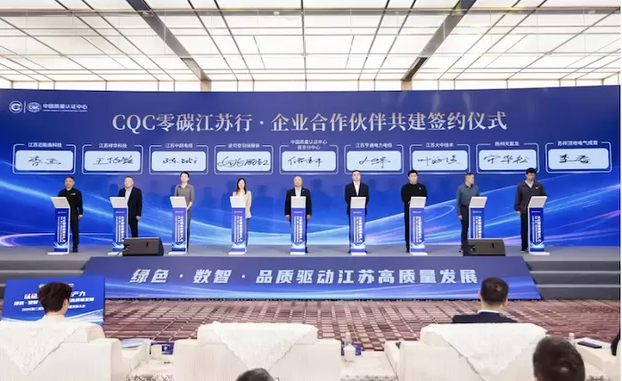 在同期举办的“CQC零碳江苏行·企业合作伙伴共建”签约环节中,亨通光电旗下江苏亨通电力电缆有限公司作为共建企业之一上台与中国质量认证中心完成签约,共同推动江苏零碳转型与产业生态共建。