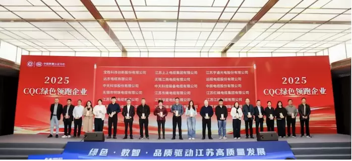 大会期间,亨通光电荣获中国质量认证中心颁发的“CQC 2025绿色领跑企业”。
