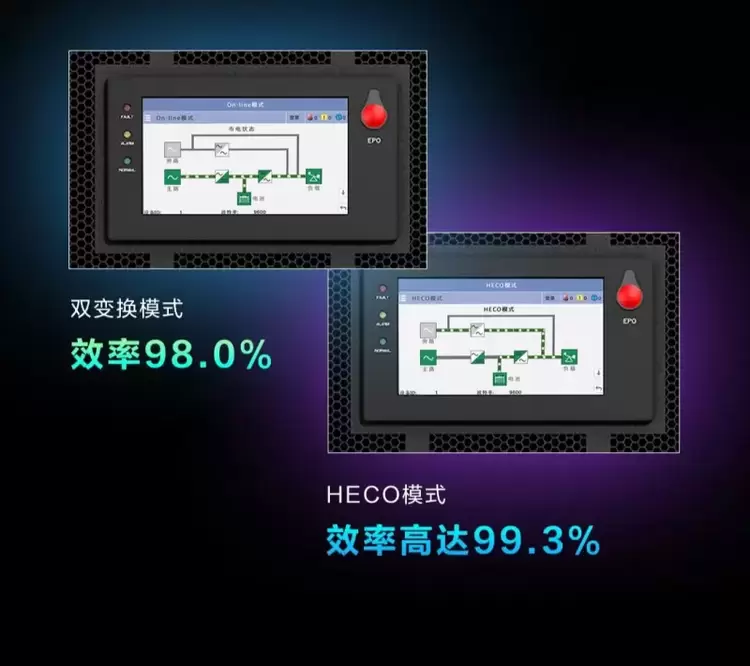 98.0%双变换模式效率,99.3%高效节能HECO模式效率,以极致电能效率,无惧电网波动,稳定支撑AI智算极限负载。