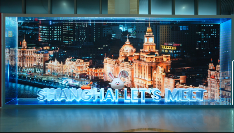 在新闻中心一楼“城市形象视觉橱窗”数字展,可爱活泼的兔小布“走出屏幕”,向来访宾客招手,从外滩万国建筑群到国家会展中心,带大家领略上海国际化都市风貌。这正是随幻科技利用AI+XR整体解决方案打造的MR动画,实现了上海发布平台吉祥物“兔小布”与城市影像的实时交互,用一方展台,打造了一场穿梭各大地标的上海Citywalk之旅。