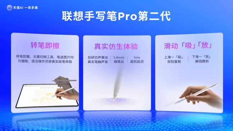 在探讨手写笔带来的AI功能之前,我们必须认识到卓越的硬件是实现一切奇妙体验的基础。联想手写笔Pro第二代在硬件性能上达到了业界顶级水准:内置主动发声技术,书写时会产生真实的沙沙声;内置的振动反馈系统还原了纸笔接触的真实触感;而极高的压感识别传感器能够捕捉精准的笔触力度变化;而接近0ms的延迟,杜绝了传统手写笔常见的延迟感和漂浮感。