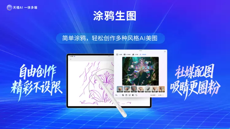 “涂鸦生图”功能只需要用户使用联想手写笔Pro第二代在联想YOGA Pad Pro 14.5 AI平板上简单勾勒线条,系统就能智能识别内容和风格,自动生成精美的图片。相较于AI文字生图,“涂鸦生图”会更直观理解用户意图,自动判断绘画内容、识别风格元素,进行艺术创作。无论是专业设计师快速呈现概念,还是父母为孩子即兴创作故事插画,都变得轻而易举。