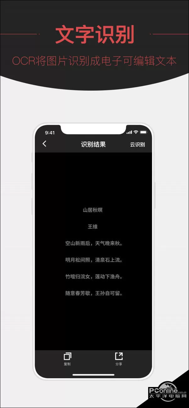 “扫喵”自带的核心算法,可自动识别扫描素材,让黑白素材更加黑白分明,让彩色素材色彩还原更真实。OCR功能可以将扫描出的PDF图片格式转化成电子可编辑文本,能极大程度地提高文字输出效率。扫描结果可同步到云端,手机上随时查看、分享,移动办公更方便。