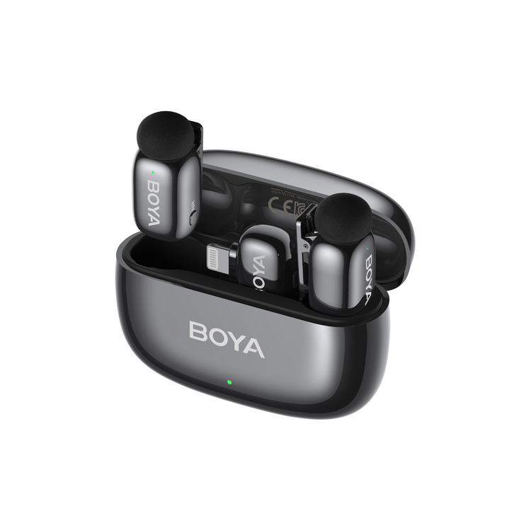 通过BOYA Central APP,用户可自由调节增益、降噪等级、声道模式、EQ音效等参数,并支持固件升级,持续优化使用体验。此外,设备还具备低切滤波、静音开关、免插拔外放等实用功能,全面覆盖创作与会议需求。续航方面,单麦续航6小时,搭配充电盒可达30小时,支持多场直播或全天拍摄。设备提供Type-C和Lightning两种接收器版本,兼容手机、平板、电脑及部分运动相机,真正实现“即插即用”。