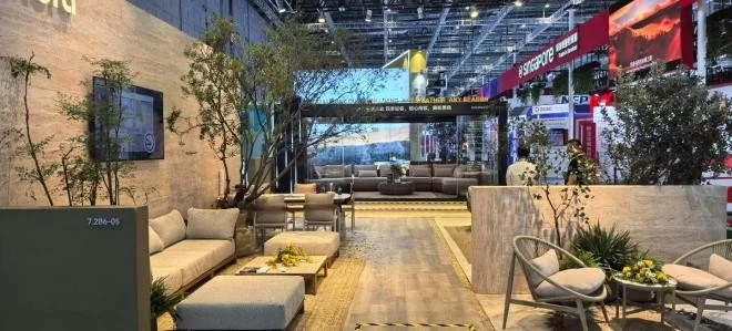 Ombra展台设计充分体现了品牌的战略视野:以“智能户外生活解决方案”为主题,通过流畅的动线规划,将Ombra智能观景棚、户外家具、休闲配套及氛围装饰有机融合,构建出一个完整的户外生活场景。参观者可以在此沉浸式体验从遮阳休憩到社交娱乐的全方位户外生活,感受科技与自然和谐共生的创新理念。