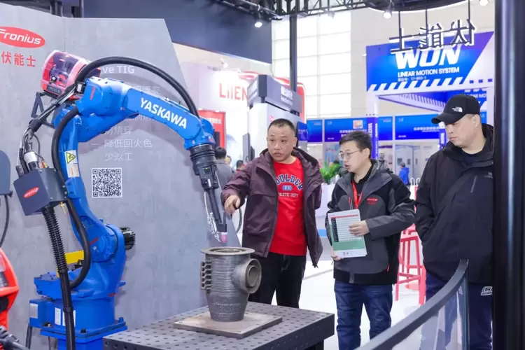 工业机器人展区颠覆传统认知,搭载先进视觉与力控技术的机械臂,精准完成焊接,还能与工人实时协同作业——当工人调整工件位置时,机械臂可自动适配轨迹,实现安全高效的人机配合。焊接、喷涂、码垛等专项机器人集中亮相,为航空航天、船舶制造、汽车制造、高端医疗、3C电子等行业提供定制化解决方案。