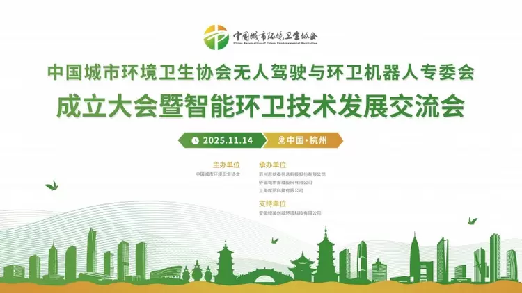 倒计时 3 天!11 月 14 日,让我们相约杭州,共同见证全国首个无人驾驶与环卫机器人专委会的正式成立,携手开启智慧环卫产业发展的新篇章,以科技之力赋能城市服务升级,为建设更清洁、更高效、更宜居的现代化城市贡献行业力量!