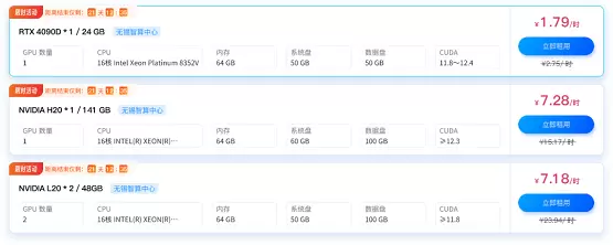 更支持弹性算力使用,按小时付费、即取即用,无需长期绑定与大额预付。以“高性价比 + 全场景适配 + 灵活计费”三重核心优势,为不同规模的 AI 开发者与企业,打通低成本接入算力便捷通道,加速 AI 技术落地与创新迭代。