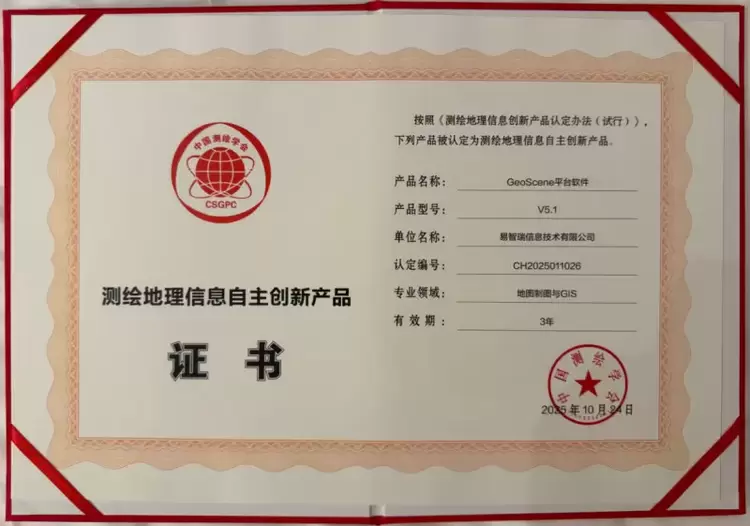 易智瑞GeoScene获测绘地理信息自主创新产品认定