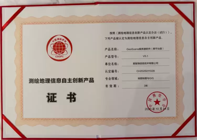 - 易智瑞GeoScene获测绘地理信息自主创新产品认定