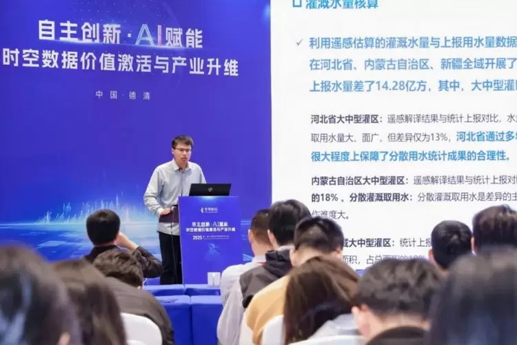 曹引博士分享了水资源遥感监测技术研究及应用的实践成果:针对农业取用水监管、河湖水生保护、水源地安全风险监管等核心业务需求,曹博士带领团队开展了实际灌溉面积、河湖库水体、水源地安全风险源等多维度的水资源遥感监测技术研究。通过技术攻关,已完成全国14个省份实际灌溉面积和灌溉水量监测、全国湖泊及重点主要河湖水体变化跟踪、典型湖库蓄水量评估以及示范水源地安全风险源分布排查等多项成果,为水资源科学管理提供了强有力的技术支撑。