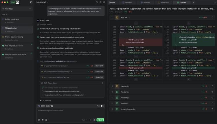 多任务列表为SOLO正式版新增功能,支持同时并行开发不同功能模块。开发者可以多线程推进工作,并在多个任务之间灵活切换,清晰掌握每个任务的实时进度,有效提升开发效率。