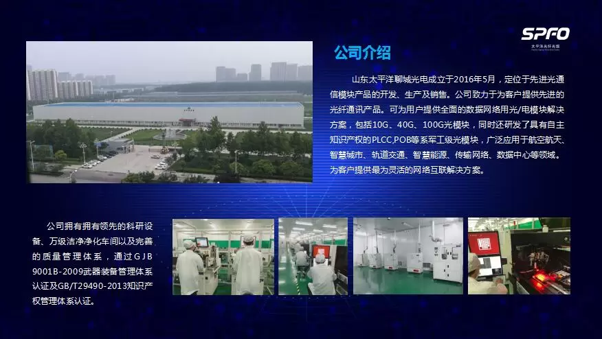 据了解,2016年5月太平洋光纤光缆投资1.33亿成立了山东太平洋聊城光电,定位于先进光通信模块产品的开发、生产及销售,可为用户提供全面的数据网络用光/电模块解决方案,包括10G、40G、100G光模块,同时还研发了具有自主知识产权的PLCC,POB等系军工级光模块,广泛应用于航空航天、智慧城市、轨道交通、智慧能源、传输网络、数据中心等领域。为客户提供最为灵活的网络互联解决方案。