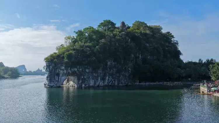 象鼻山作为桂林的城徽,是必拍的第一个打卡点。它宛如一头巨象临江而立,长长的鼻尖探入漓江碧波,仿佛在畅饮甘泉。