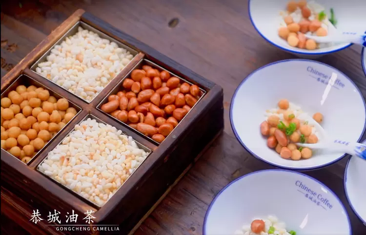 油茶也是许多桂林人的心头爱。当热腾腾的花生油茶端上桌,金黄色的液体中闪烁着诱人的光泽。