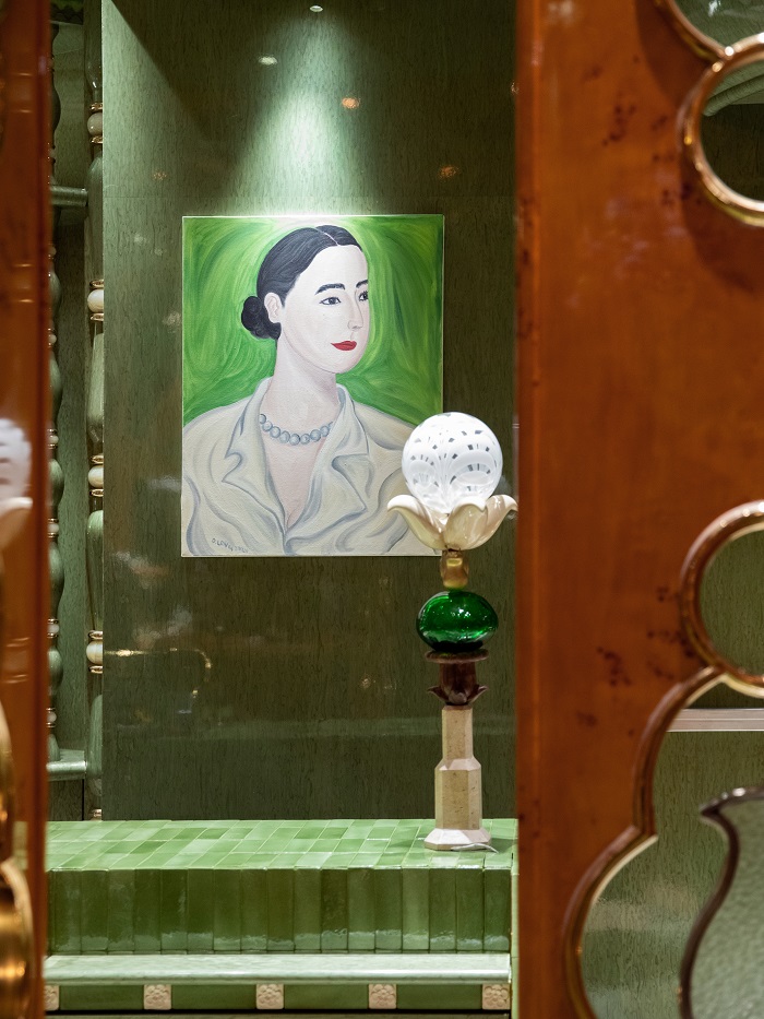 步入店内空间,手绘仙鹤漆画与地面马赛克幼鹤衔珠纹案遥相呼应,可谓俯仰皆景。从隔断式屏风门到柜门把手等,玉瓶元素则大大小小、错落有致地藏嵌于多处细节之中。家居服区,以明黄色麒麟纹样的dedar纺织面料上墙,极具中式韵味的提花与明亮醒目的色彩使得整块区域温暖而不失奢重,与空间内所陈列的宋锦、香云纱刺绣家居服饰等相辅相成。随处可见的插花艺术, 悄然融于店内每处角落,以呈现花的不同形式——几株兰花,室有清香;玻璃辛夷,灼灼其华;玉石瓶花,相得益彰…… 有谓花有百态,美美与共。值此之际,邀你来新店共赏这四时之花,潜入蓬莱一梦。