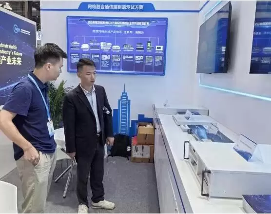 现场通过技术交流与互动体验,吸引了众多来自运营商、设备商、科研院所及消费电子企业的专业观众驻足交流。尤其在智算网络测试、网络安全测试、无线通信全栈测试系统区,参观者与技术人员就测试细节与应用场景展开了深入探讨。