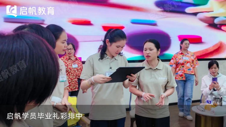 当舞台灯光亮起,学员们自编自导的节目缓缓开场,启帆教育又一届毕业礼正式拉开帷幕。这场由学员全程主导的庆典,从主持串词到节目编排,从现场布置到流程衔接,每个细节都凝聚着一个月来的心血。对学员而言,这不仅是学习生涯的收尾,更是对学成毕业的郑重致敬,以及对“传播家庭教育知识” 新旅程的满心期待。