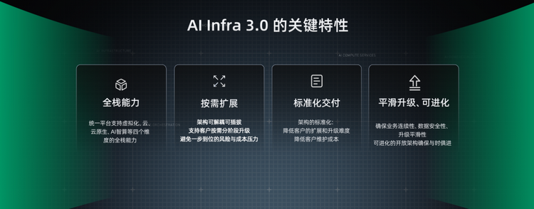 在这四层能力的支撑之下,青云 AI Infra 3.0 给客户带来四个关键的特性。