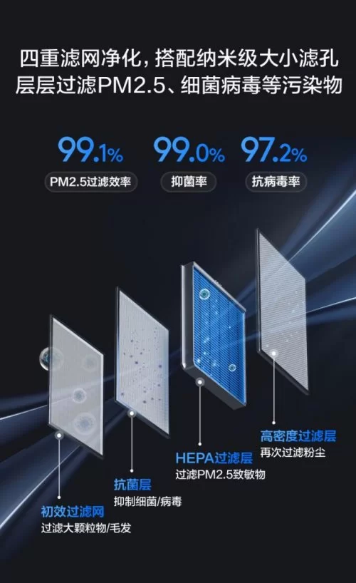 净化方面,TCL小蓝翼P7 AI健康空调拥有四重滤网净化,搭配纳米级大小滤孔,过滤PM2.5、细菌病毒,PM2.5过滤效率达99.1%,抑菌率99.0%,抗病毒率97.2%,雾霾天也能守护室内洁净。另外,其内置TVOC气体传感器实时监测甲醛等有害气体,通过蓝、黄、橙三色指示灯直观显示空气质量,依据实时空气TVOC浓度主动调节新风,好空气看得见,让家人对室内空气状况了如指掌,呼吸更安心。