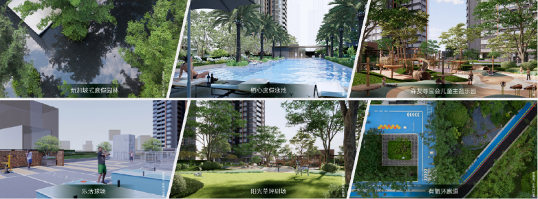 4.社区配套: 园区内规划有泳池、儿童乐园、羽毛球场、健身房等全龄化休闲设施,架空层设计也为社区社交空间提供了可能。