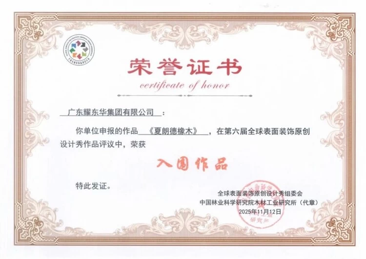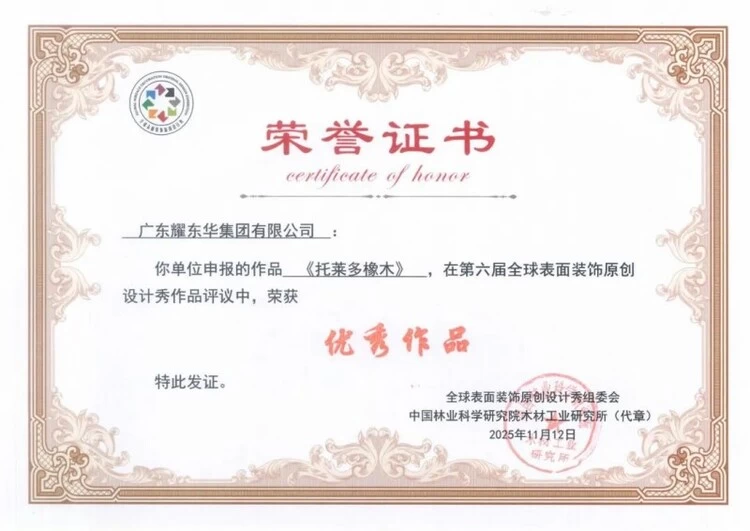 在本次设计秀的激烈角逐中,耀东华集团共有三款作品参赛且取得了令人瞩目的成绩。《云栖漫影》以其独特的设计理念荣膺花梨奖,《托莱多橡木》与《夏朗德橡木》两款作品同样表现不俗,分别获得优秀作品以及入围作品。