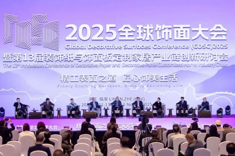 ▲2025全球饰面大会暨第13届装饰纸与饰面板定制家居产业链创新研讨会现场