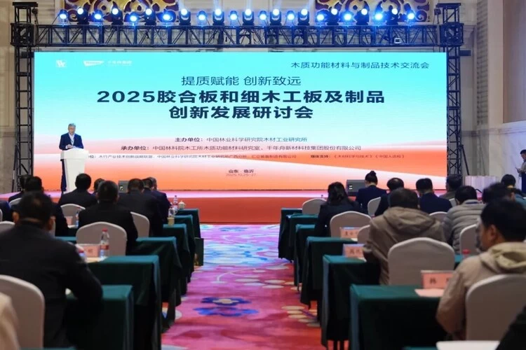 2025年10月25日至27日,由中国林科院木材工业研究所主办的“木质功能材料与制品技术交流会暨2025胶合板和细木工板及制品创新发展研讨会”在山东临沂成功举办。本次大会以“提质赋能,创新致远”为主题,汇聚了来自全国各地的行业主管部门领导、科研机构专家、高校学者、企业代表及质检机构负责人等200余位嘉宾,共同探讨人造板产业的高质量发展路径。