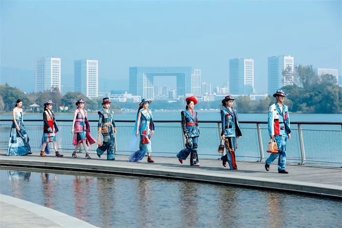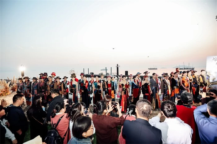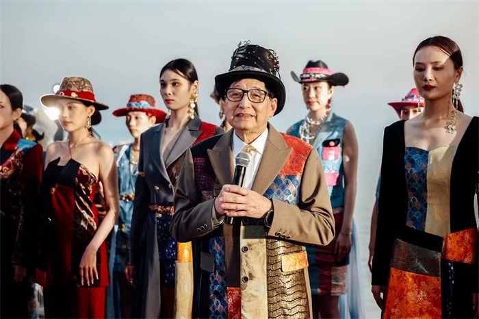 活动现场,朱炳仁大师与模特集体谢幕并致辞。他强调:“从熔铜到熔装,是技艺的跨界,更是观念的破界。让千年铜艺走出博物馆,以时尚融入当代生活,这才是非遗真正的生命力。”他进一步表示:“通过这场秀,我们把铜与服装跨界融合,与山山水水完美结合,展现的是我们心中美好的生活。在山水文化与服装文化的交融中,我们希望每个人都能够时尚起来、快乐起来、幸福起来、亮起来,用绚丽的色彩装点我们的生活。” 此言此景,在万浪桥的自然场域中交相辉映——艺术源于自然,创新终将回归生活。