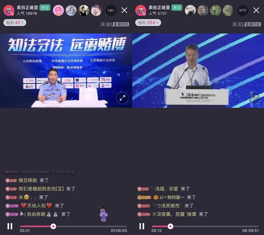 此外,美拍还相应国家号召,积极开展了“知法守法,远离赌博”禁赌网络以及“国家网络安全宣传周”等直播宣传工作部署;在七一建党节期间,发起了“七一在我心”直播,带领年轻人重温历史与先烈的光辉事迹,获得众多用户的响应与支持,构建了弘扬社会正能量的浓厚氛围。