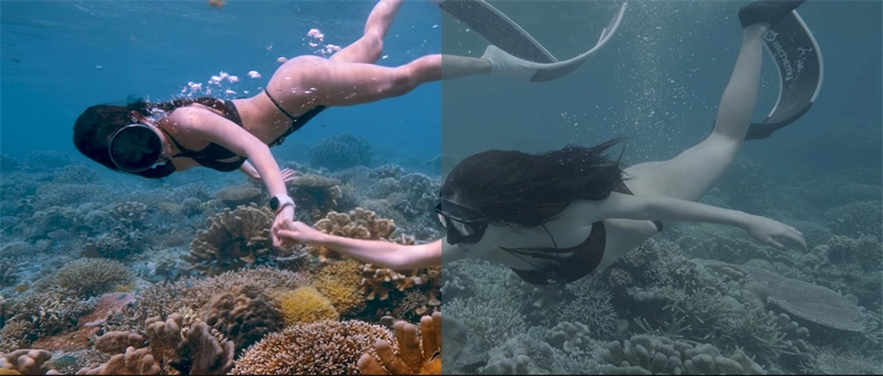 此外,FX3A 机身重量仅约 640g,与鳍源水下机器人形成轻量化组合,使整套设备更易于快速部署,可在河流、湖泊、海洋等多种场景中高效工作。“主摄+僚机”的协同模式进一步提升安全性与稳定性,使水下影像采集从高风险的人工作业转向更标准化、可复制的工作方式,提升项目制作效率。