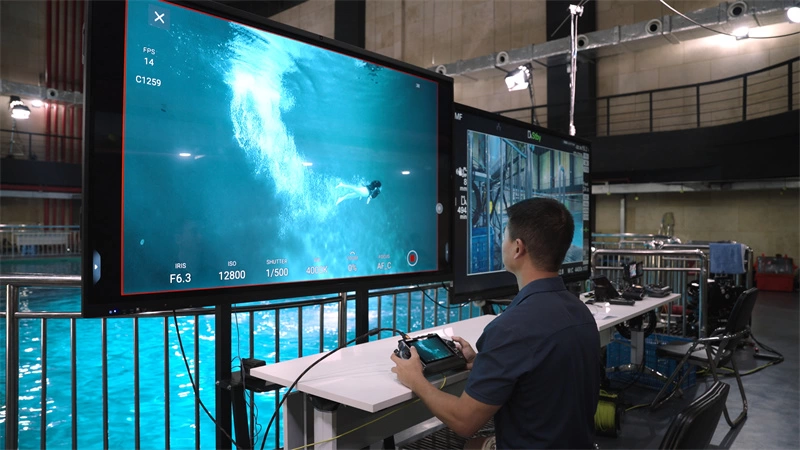 随着影视创作对特殊场景影像需求的不断升级,传统水下拍摄方式的局限日益显现。摄影师往往需携带重型设备进行潜水拍摄,在光线昏暗、水流复杂等环境下,不仅面临沟通滞后与安全风险,还要应对运镜稳定性不足、自由度受限、色彩失真、单次拍摄时长不足(气瓶限制约 30 分钟)等问题。岸上团队也难以及时调整参数、协调画面,使创意构想往往难以完整呈现,令水下影像创作长期“行走在技术与环境悬崖边缘”。