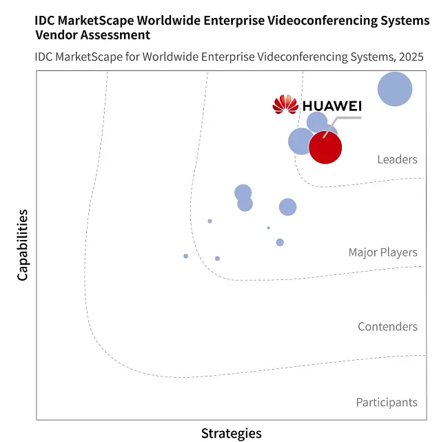 近期,国际数据公司(IDC)发布了《IDC MarketScape:全球企业视频会议系统2025供应商评估报告》。在对13家主流厂商的策略执行、硬件软件能力、服务体系及市场影响力进行全面评估后,华为成功位列领导者。
