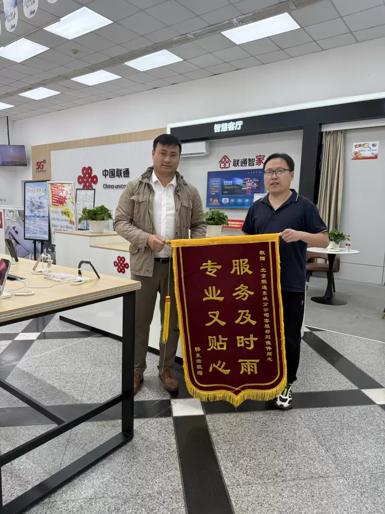 近日,北京联通东城分公司收到客户专程送来的一面锦旗,上面写着“服务及时雨,专业又贴心。”