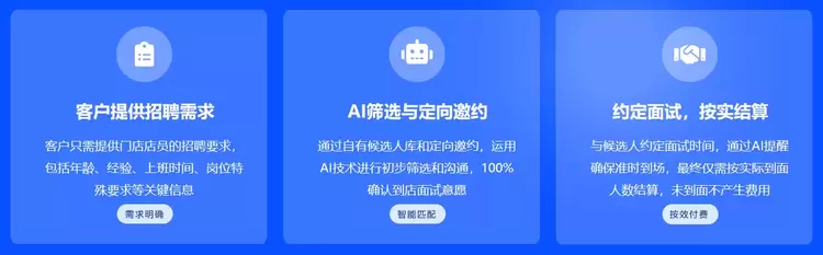 妙招AI直聘新推出的基于AI+到面的“到面保”是专为门店招聘全链路打造的核心产品,与传统招聘“仅以招到人为目标”不同,其核心理念以“稳定运营”为导向,精准解决人工筛选效率低、候选人爽约率高、面试效率低等门店招聘痛点。该产品采用“服务三部曲”模式:首先由客户提供门店店员的年龄、经验、上班时间、岗位特殊要求等关键招聘需求;随后平台通过自有候选人库与定向邀约,运用AI技术完成初步筛选与沟通,100%确认候选人到店面试意愿;最后与候选人约定面试时间,通过AI提醒确保准时到场,客户仅需按实际到面人数结算,未到面不产生任何费用,真正实现灵活交付合作模式,大幅降低企业招聘成本与风险。