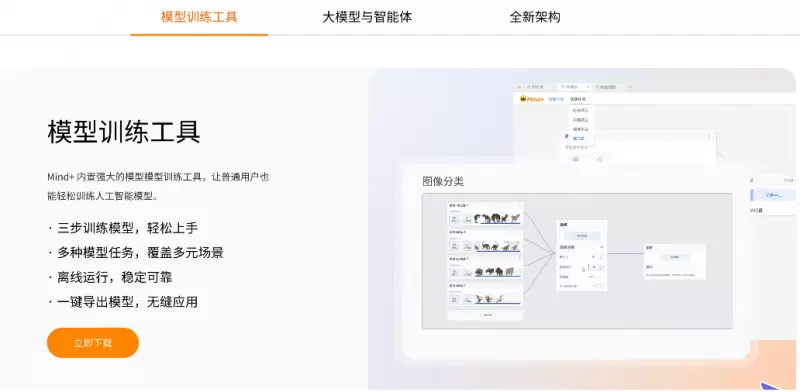 Mind+ 2.0 集成低门槛AI模型训练工具,让普通用户也能轻松训练专属模型。通过“数据准备→模型训练→校验部署”的简洁流程,配合一键导出与离线运行功能,用户可快速实现图像、语音等智能识别应用,让普通用户也能轻松训练人工智能模型。