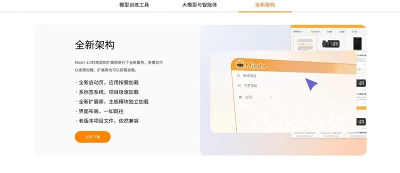 2025 年 11月 20 日,DFRobot旗下深受全球创客及教育用户喜爱的 Mind+ 青少年编程软件迎来重大焕新,正式推出 2.0版本。本次升级以 A1模型训练、软件架构革新与大模型与智能体三大核心功能为核心,构建更智能、更高效、更易用的创意造物平台。Mind+将功能系统拆分为程序设计、模型训练、界面设计三大类别十余种模式,一站式满足从创意到成品的全流程需求。