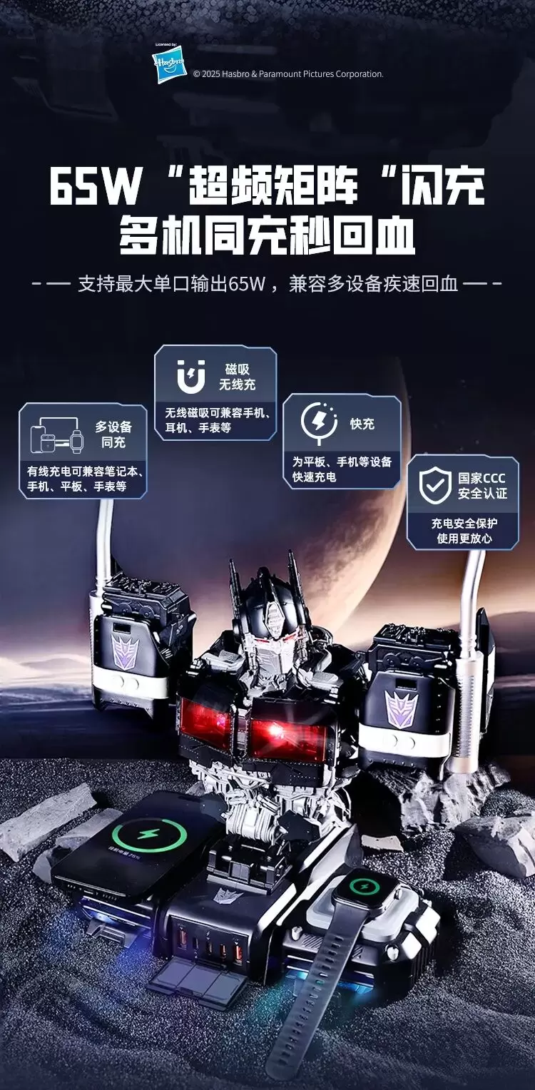秋末冬初,橙黄橘绿,深交所上市公司中文在线(300364)与安徽文交所文潮集市达成项目合作,双方近日联合发布了一款极具创新性与文化魅力的潮玩产品——【变形金刚暗天陨桌面充能站-65W(典藏版)】。