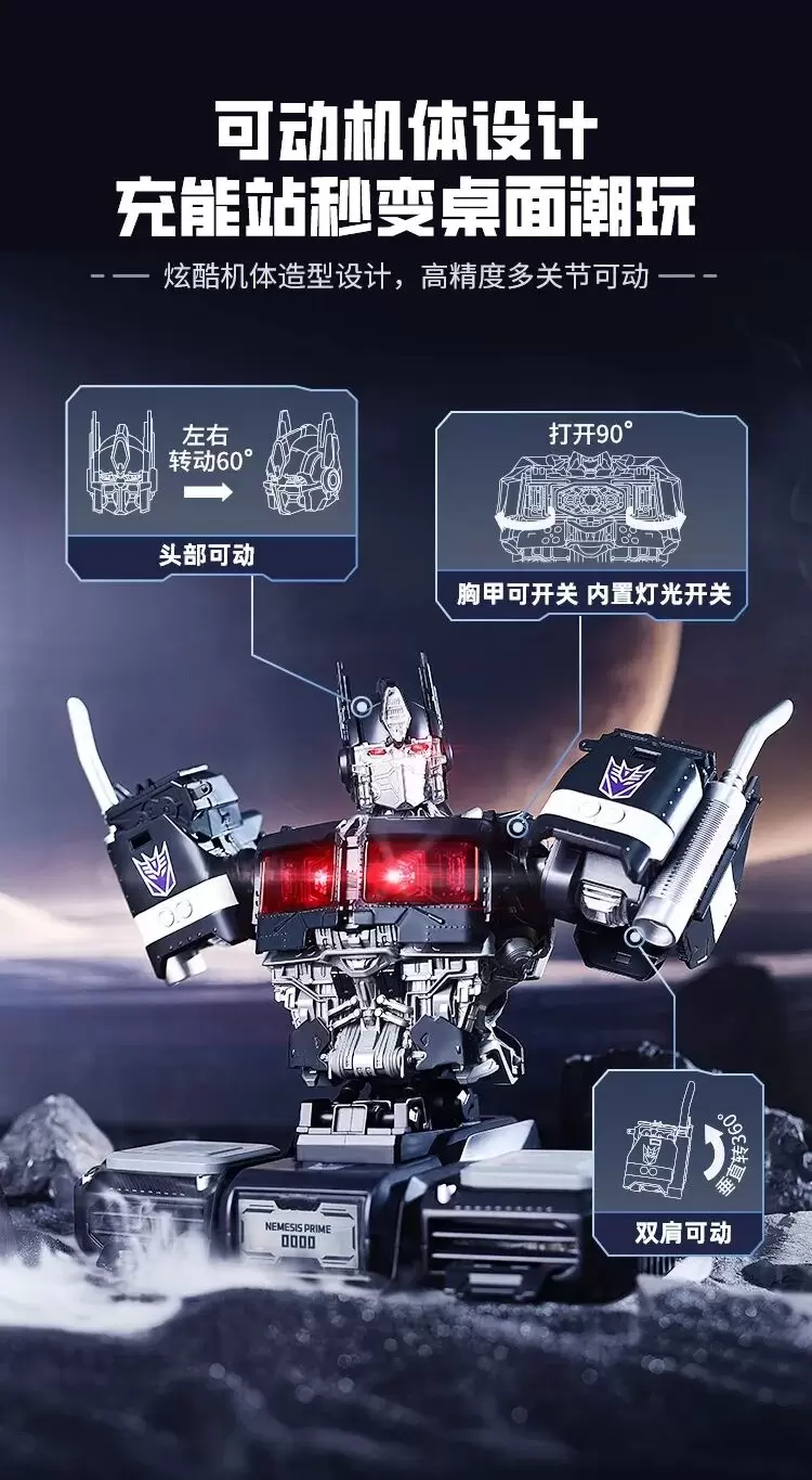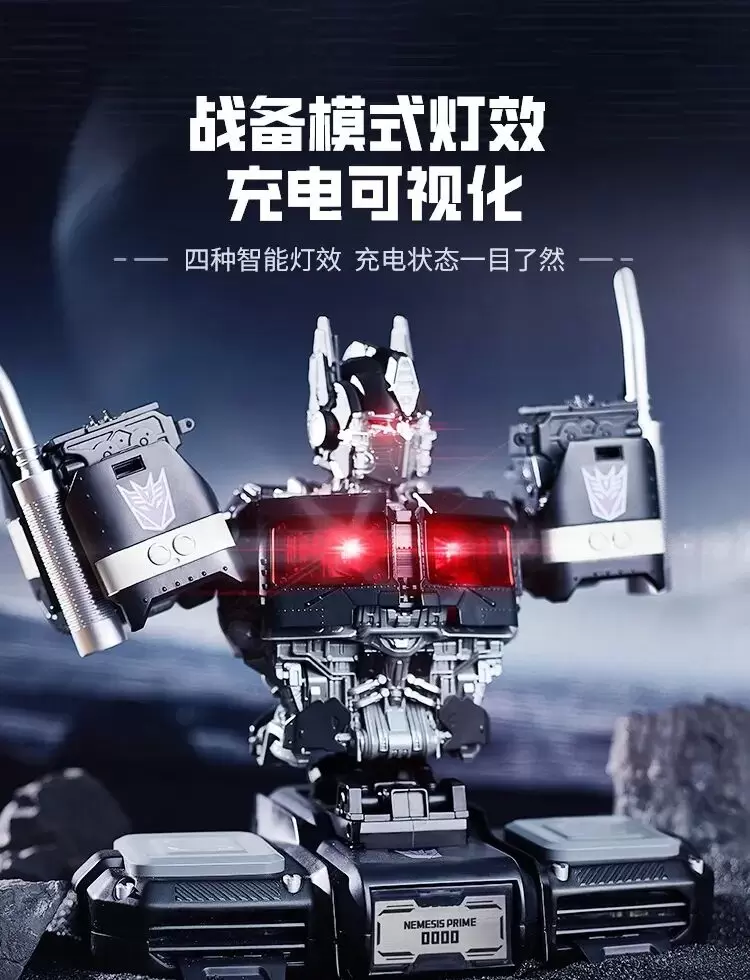 变形金刚桌面充能站-暗天陨,正版授权,融合尖端智能科技与变形金刚宇宙的经典美学,为您呈现一款前所未有的桌面充能艺术品。作为典藏级作品,它不仅承载着高效的充电性能,更将变形金刚的传奇故事带入您的日常生活,让每一次充电都成为一次与英雄并肩作战的体验。
