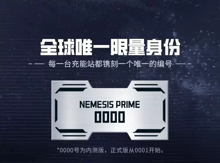全球唯一限量编号。每一台充能站都镌刻一个唯一的编号。