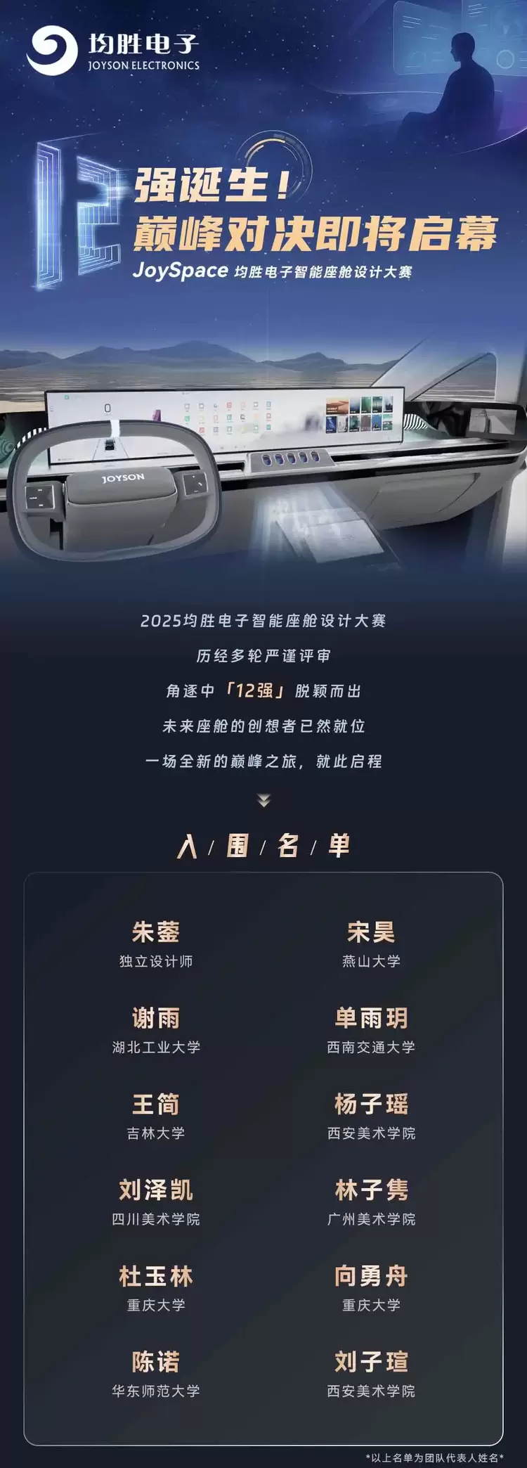 - 2025JoySpace均胜电子智能座舱设计大赛12强集结 巅峰对决蓄势待发
